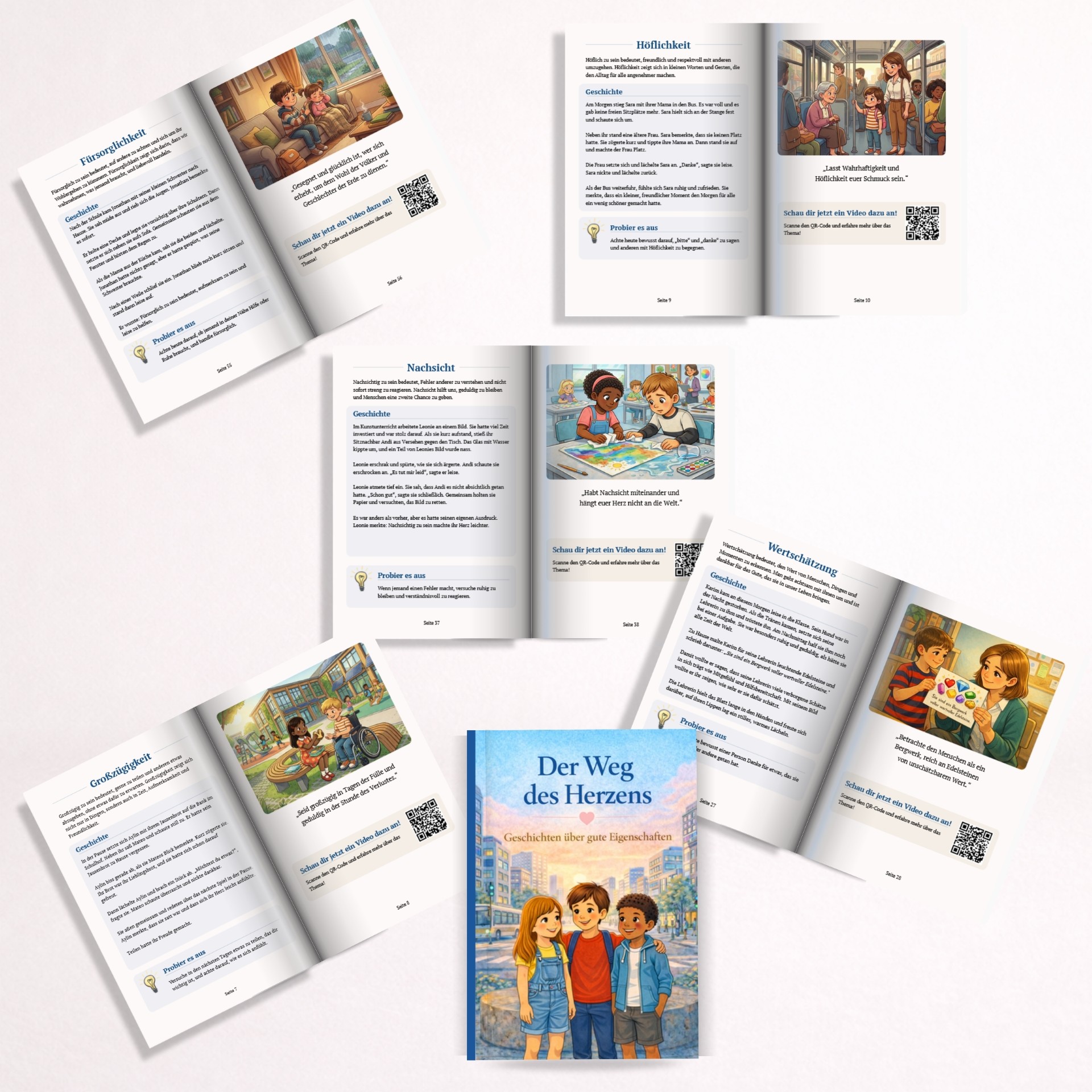 In den meisten Kapiteln ergänzt ein QR-Code den Text – er führt zu kurzen Videos der Peacemakers Company Wien, die die jeweilige Eigenschaft kindgerecht veranschaulichen.